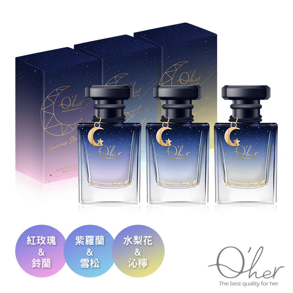 Q'her植感 綻光星月 女性淡香水(紅玫瑰與鈴蘭) 30ml (一組3瓶)